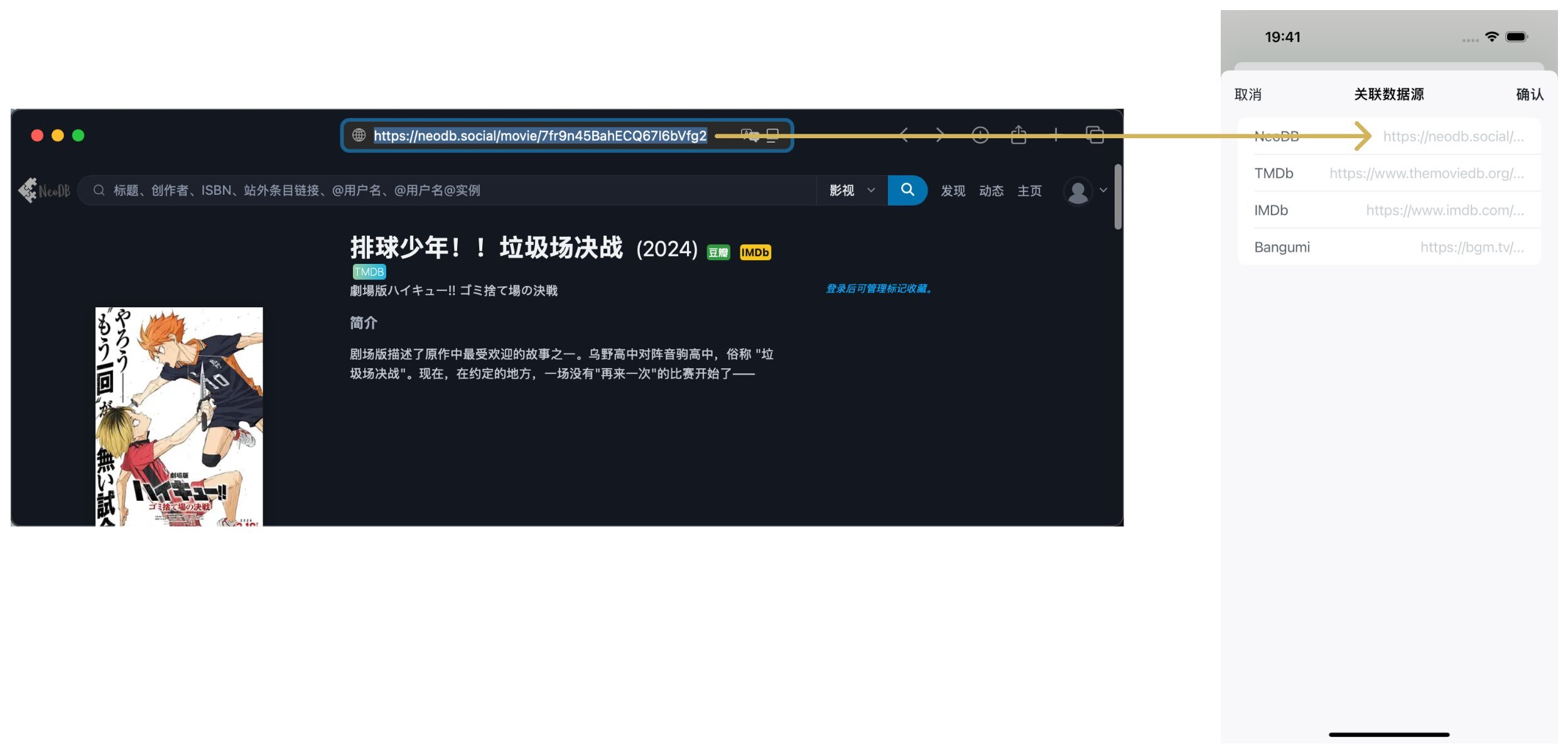 以 NeoDB 为例,如图所示复制链接粘贴进去后即完成关联。