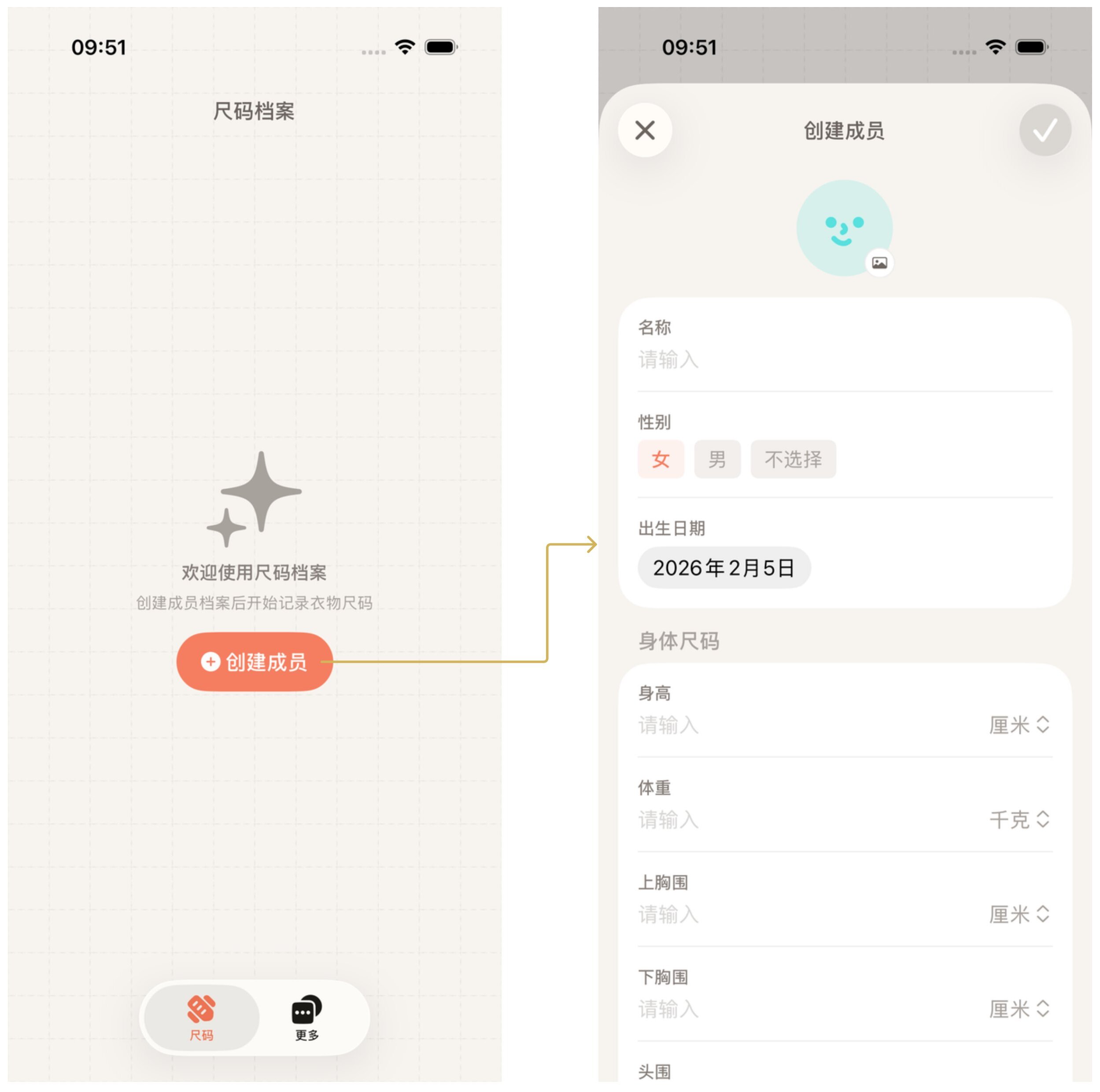 尺码档案是你的专属身材与衣物尺码管理工具。